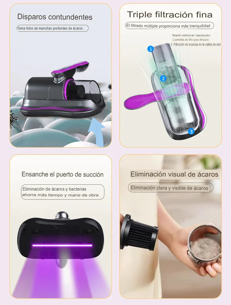🔆 Elimina 99.9% de ácaros y bacterias con luz UV y succión potente.