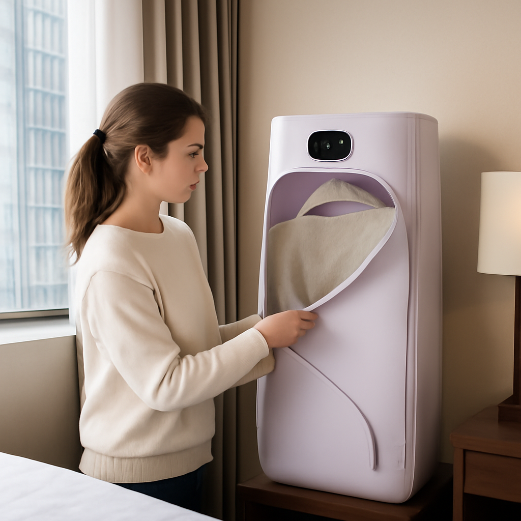El Secador de Ropa Plegable con Esterilización UV seca y desinfecta tus prendas rápidamente usando luz UV, eliminando bacterias y malos olores. Su diseño compacto y plegable lo hace ideal para espacios pequeños o viajes. Con tiempos de secado programables de 1, 2 o 4 horas, es fácil de usar y garantiza que tus prendas queden secas y desinfectadas sin dañarlas.