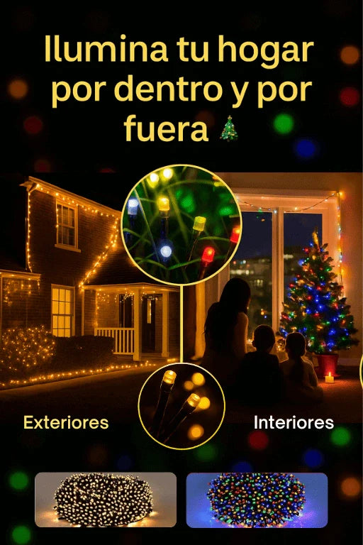 2X1 Luces solares navideñas💡 Ahorra energia y disfruta las mejores luces navideñas con panel solar, 10 metros + 10 metras de regalo adicional🎁